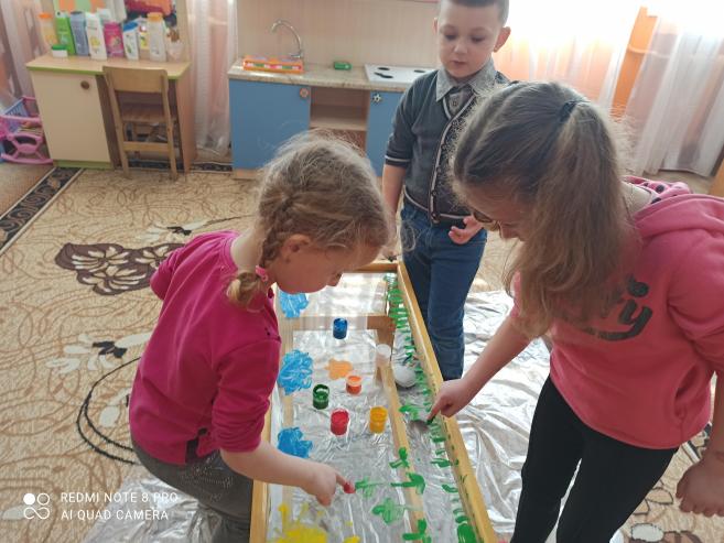 Нетрадиційна техніка малювання на склі "Весняний пейзаж" (ст.гр.)