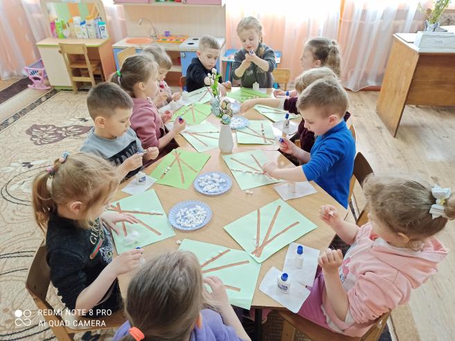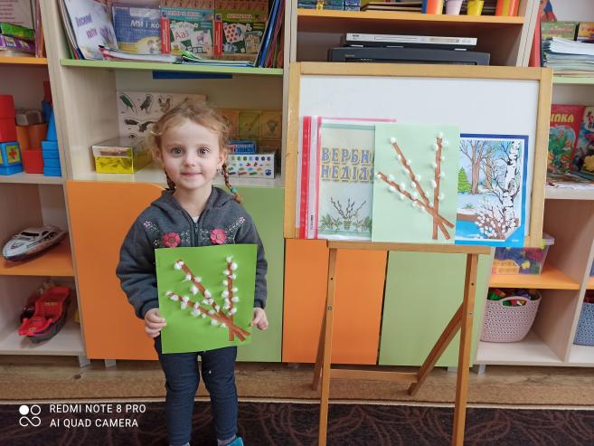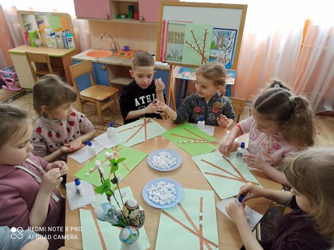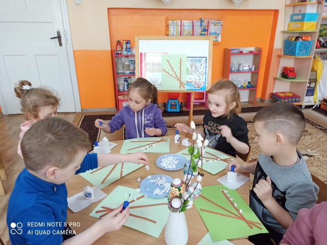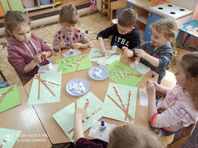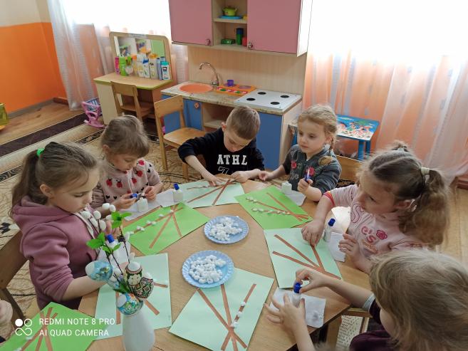 Аплікація "Вербові котики" (з використанням вати) (ст.гр.)