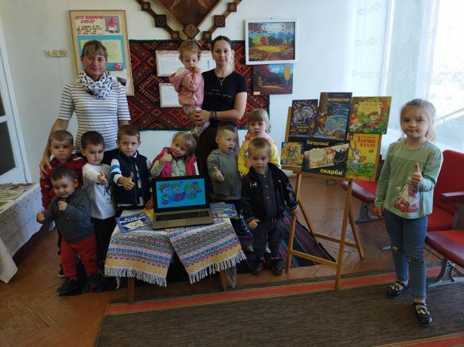 На завершення екскурсії маленькі читачі отримали в подарунок для дитсадка- декілька дитячих книг.